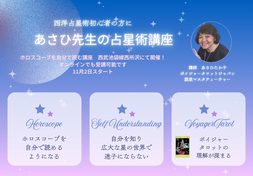 今日はあさひ先生の西洋占星術講座のお知らせです。